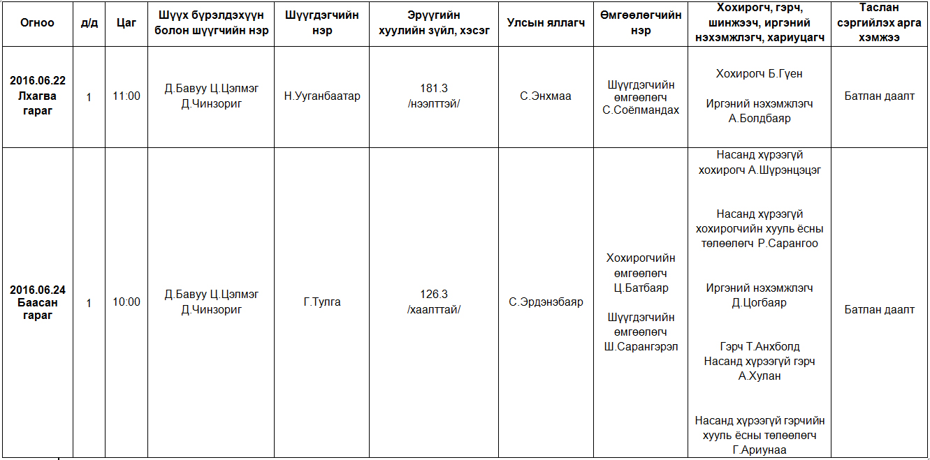 АНХАН ШАТНЫ ШҮҮХ ХУРАЛДААНААР ХЭЛЭЛЦҮҮЛЭХ ЭРҮҮГИЙН ХЭРГҮҮД (2016.06.20-06.24)