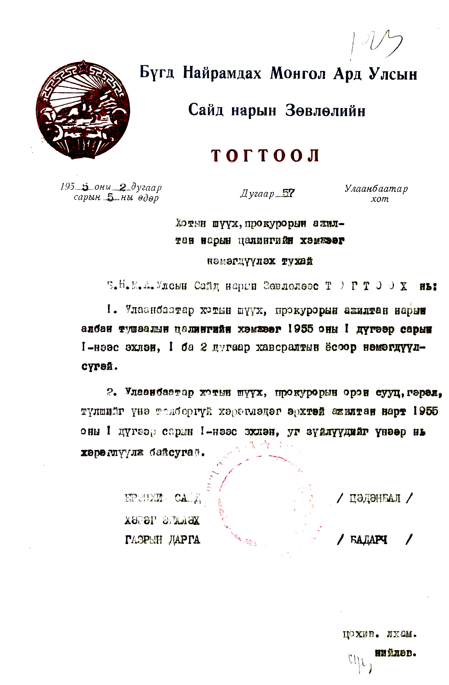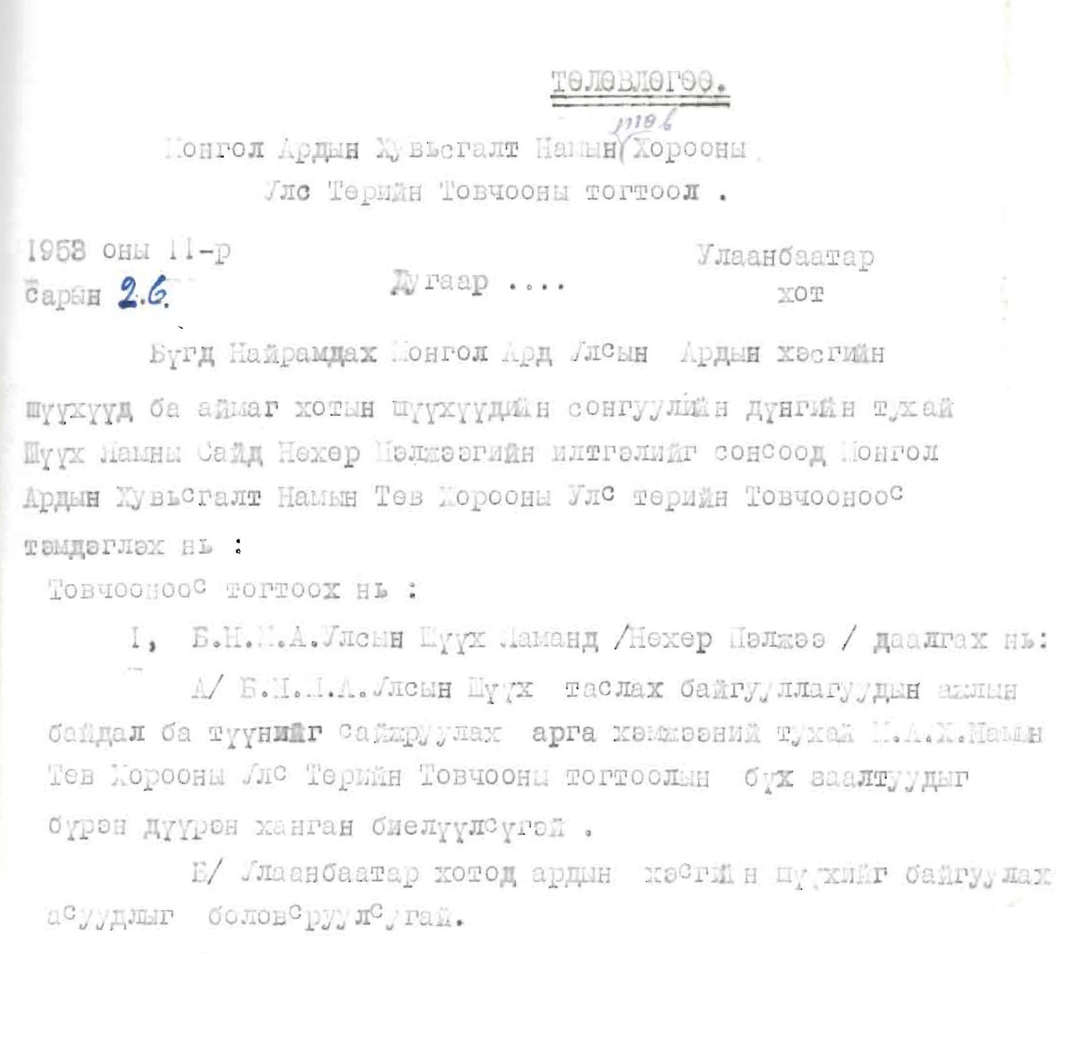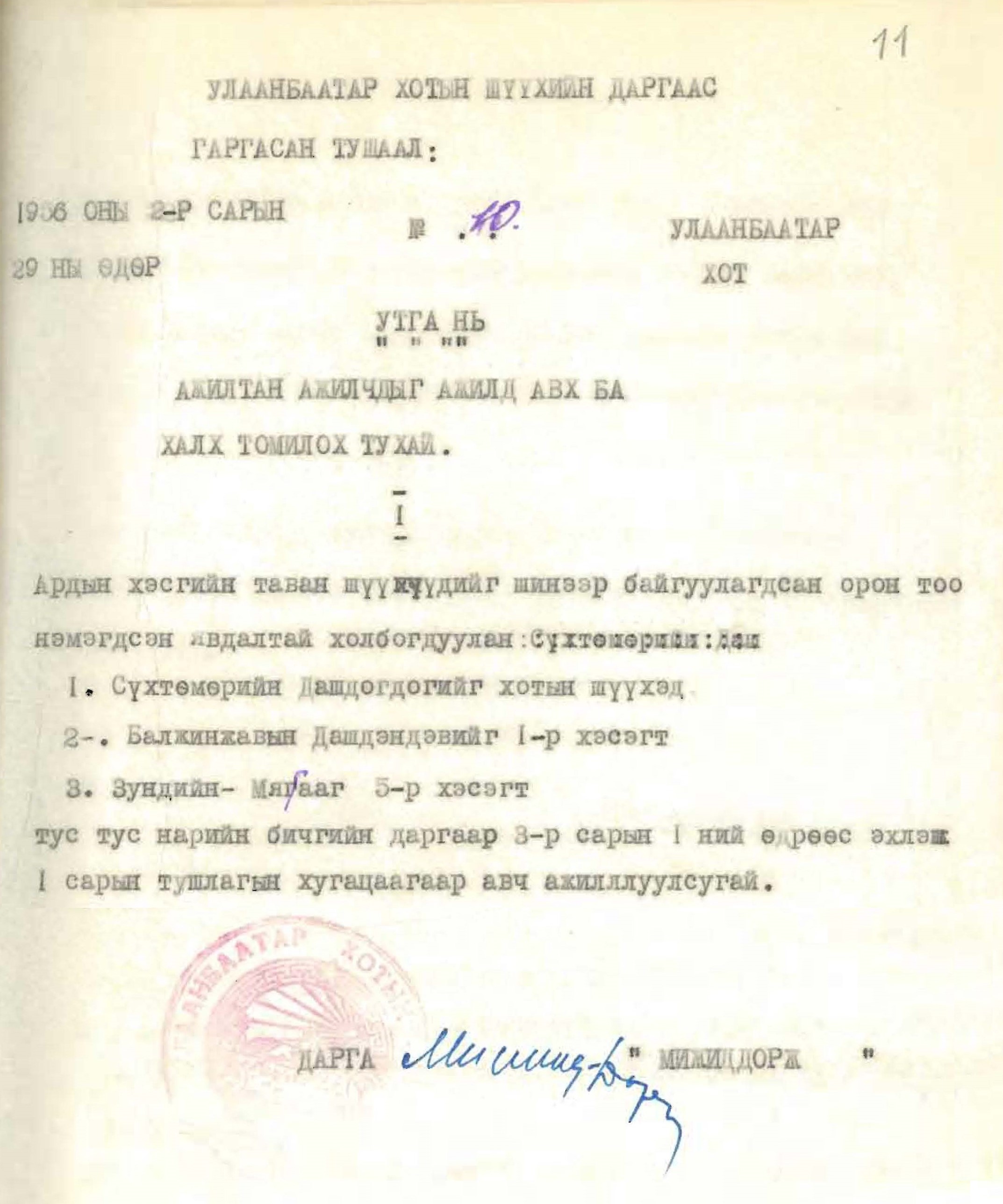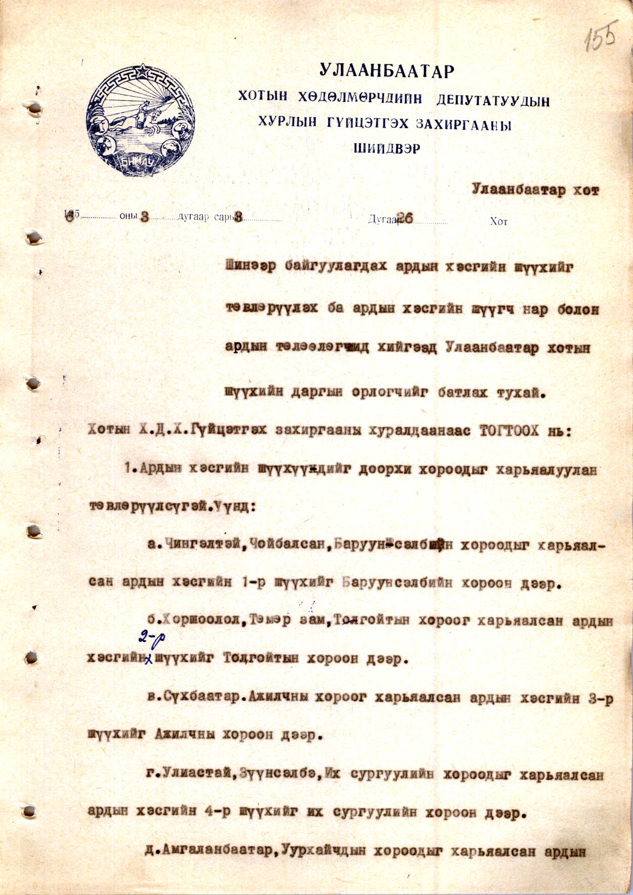 Эндээс үзэхэд 1953 оны 10 дугаар сарын 18-ны өдөр 18 аймгийн шүүх, 76 ардын хэсгийн шүүхийн шүүгч, ардын төлөөлөгчийг сонгох сонгууль явагдаж, харин Улаанбаатар хотод ардын хэсгийн шүүх байгуулах асуудлыг боловсруулахыг БНМАУ-ын Шүүх яаманд буюу тухайн үеийн шүүхийн дарга нөхөр Пэлжээд даалгаж байжээ.