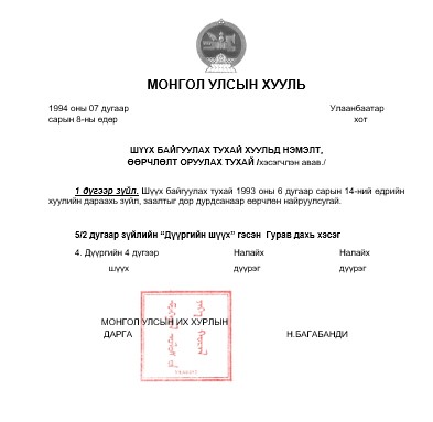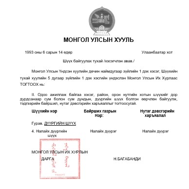 Багахангай, Налайх дүүргийн Иргэний хэргийн анхан шатны тойргийн шүүхийн танилцуулга
